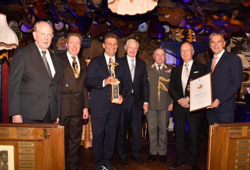 In the Strauss Anniversary Year 2025, in which the world of music commemorated the 200th birthday of Johann Strauss, the Golden Johann Strauss was given to the world-famous Kammersänger Jonas Kaufmann by the President of the Johann Strauss Society of Vienna. On 5th September 2025 the opera singer received the internationally renowned and highly-coveted prize, which is referred to by the media as the „Waltz Oscar“. The presentation ceremony, by various media considered as the highlight of the Strauss Year, took place in the Marchfelderhof Restaurant in Deutsch-Wagram, where this award has been traditionally presented annually. On this special occasion, four former awardees were also present to express their ongoing commitment to the Johann Strauss Society of Vienna and to personally welcome the newest recipient into their circle. Jonas Kaufmann was awarded the Golden Johann Strauss at a significantly younger age than any previous recipient.